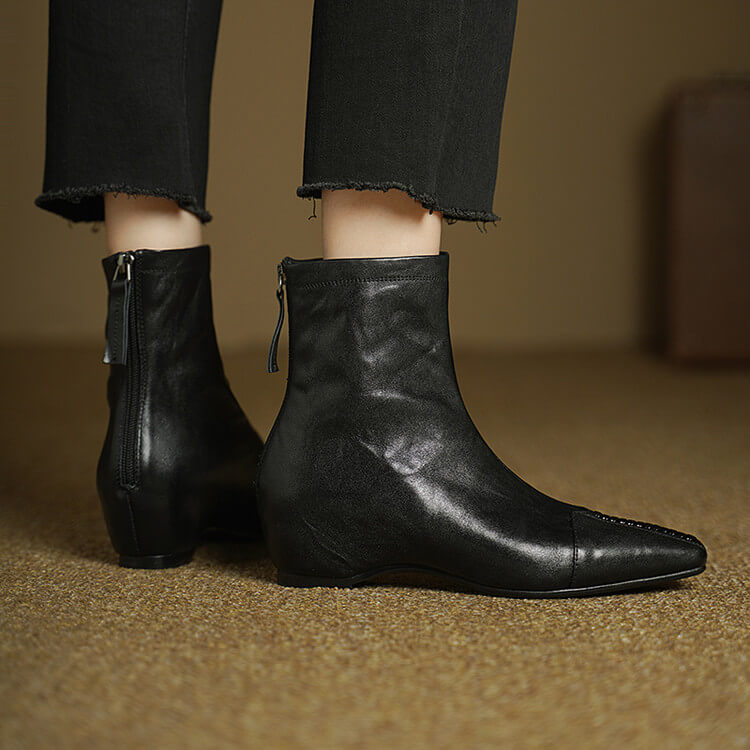 Women's Pointed-Toe Ankle Boots with Hidden Heel Y2736