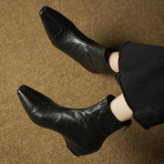 Crafted from premium full-grain cowhide, these handmade ankle boots feature a sleek pointed toe and a discreet 4.5cm hidden lift for an elegant boost. Choose between genuine leather or thick fleece lining for comfort in any season. Available in white, brown, and black, these minimalist boots combine timeless style, softness, and durability—perfect for effortless everyday elegance.